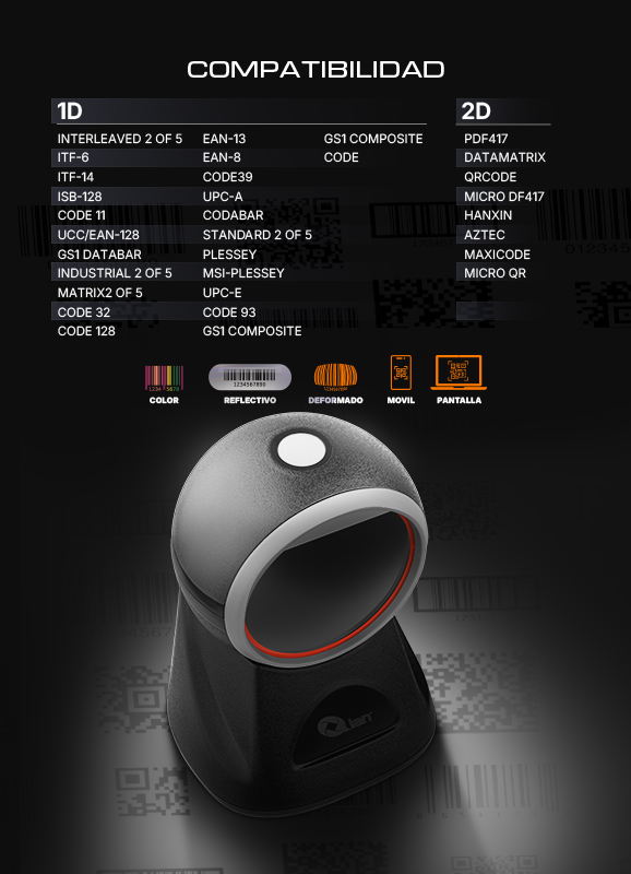 - Compatible con códigos 1D y 2D, asegurando una lectura precisa y eficiente.