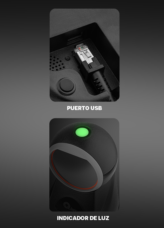| Características adicionales | Plug and play (conectar y usar) | Soporta lectura de códigos 1D/2D incluyendo: cubiertas plásticas, reflejos, desenfoque, arrugas, códigos de color, códigos en pantalla, códigos largos, etc. |