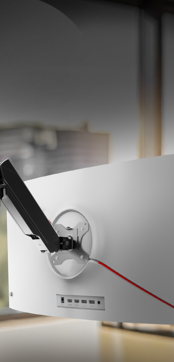 La pantalla curva de 30” con relación de aspecto 21:9 y resolución FHD Ultra Ancha (2560x1080) ofrece un campo de visión inmersivo y panorámico.